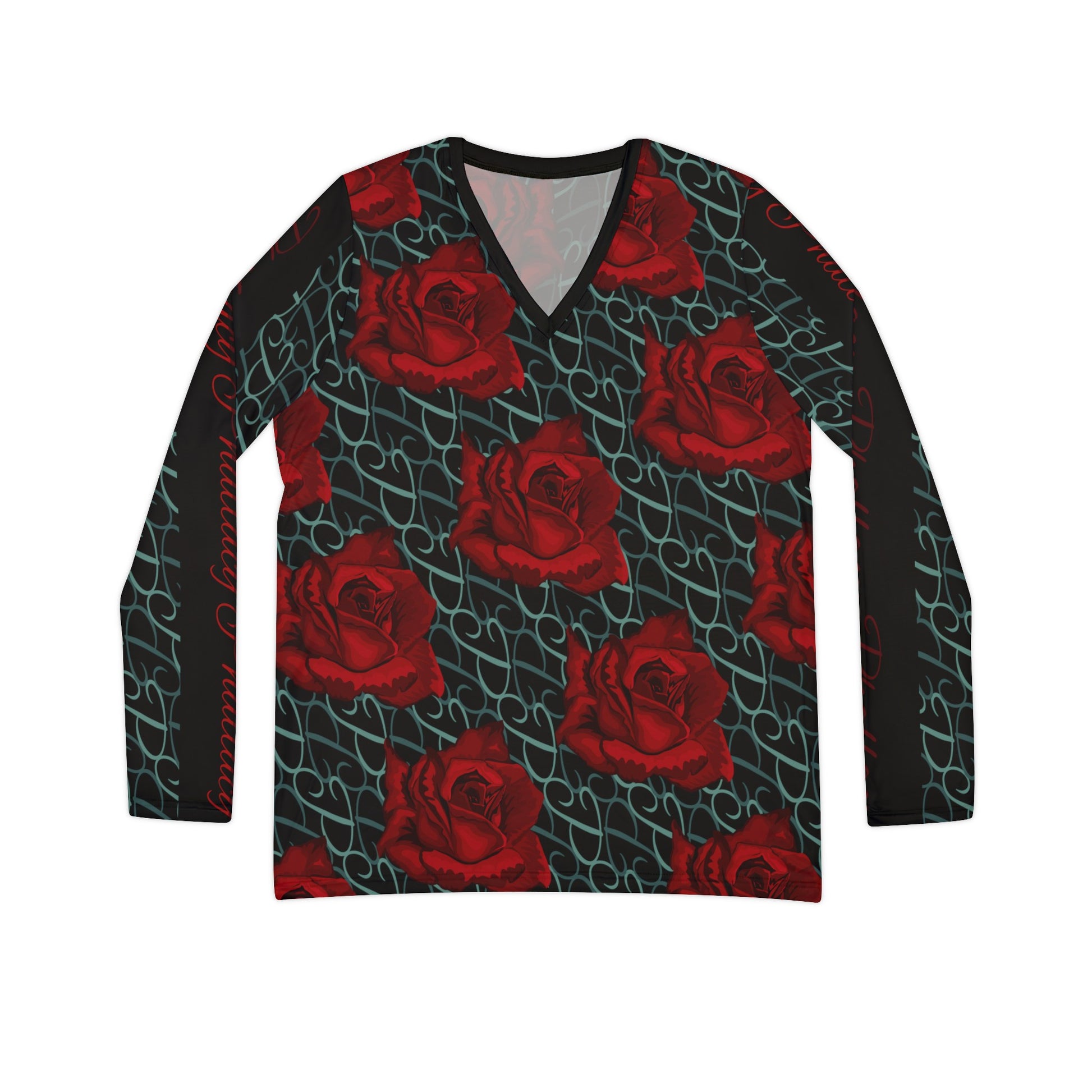 Phallacy Designer Floral Women's Long Sleeve V-neck